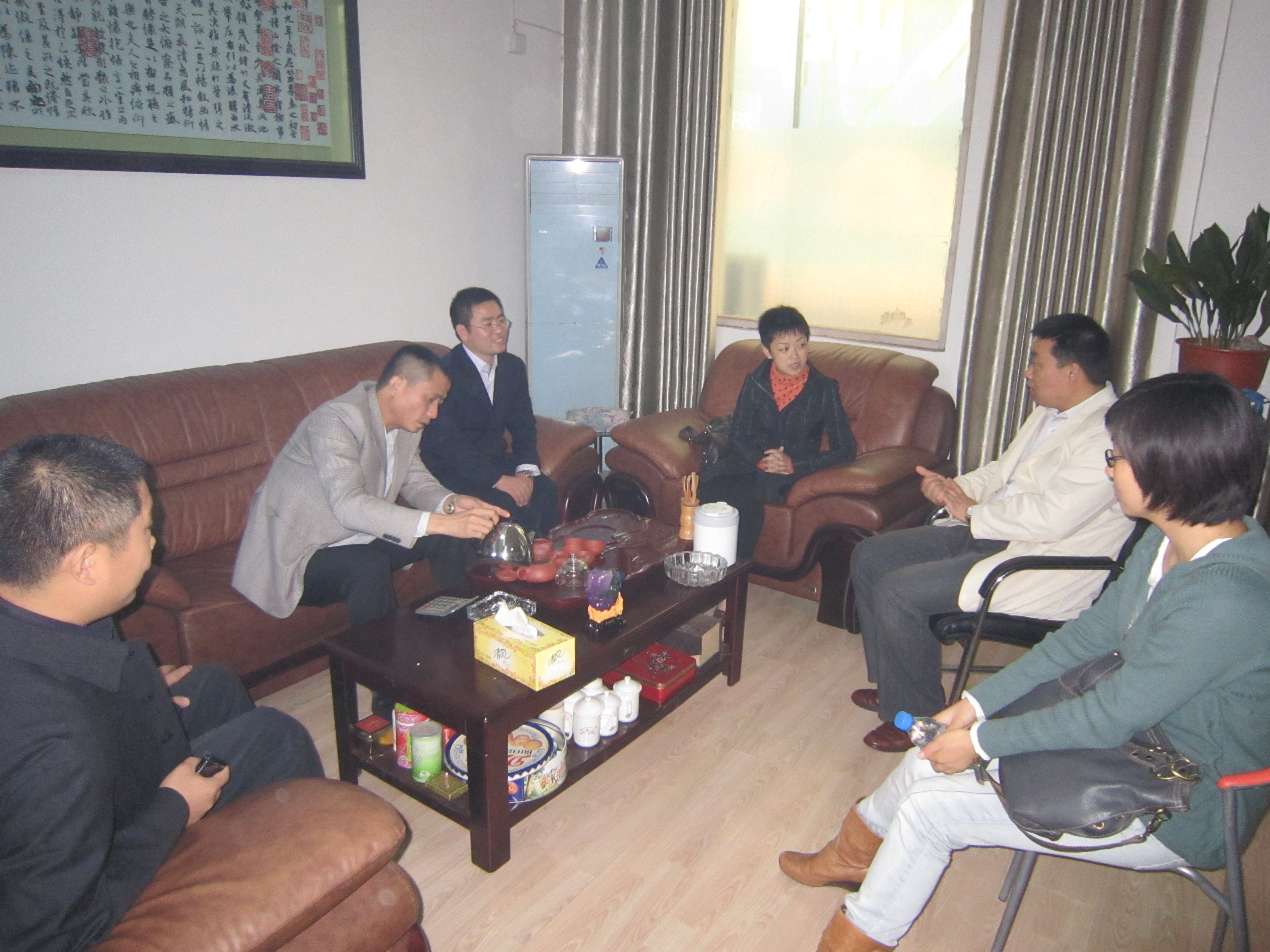10月14日,公司党总支书记梁惠、党总支副书记葛志亮、院学工办主任史丽君、专职辅导员李彦江一行四人到徐州市贾汪区贾汪镇调研“创先争优”活动,并就公司党总支与泉东村党总支“结对共建”事宜与贾汪镇党委书记韩振磊、党委副书记张光新、副镇长张弛和泉东村党总支书记朱兴亚等进行了深入交流,双方就“创先争优”活动、结对共建、农村劳动力培训、主题实践活动、实习实践基地建设等有关方面的工作达成了初步意向,并就结对共建的具体内容和实施步骤提出了进一步的构想。