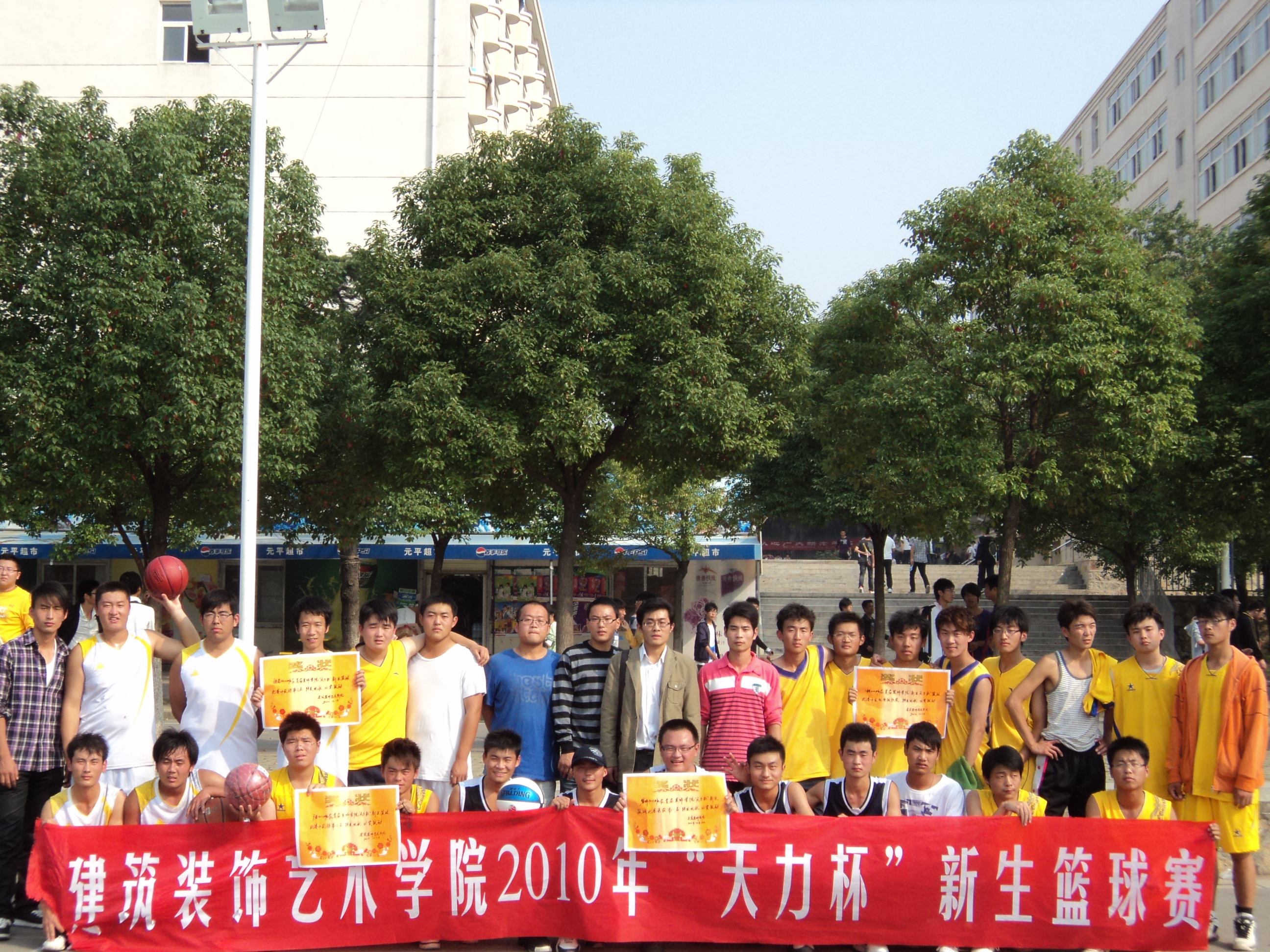 为了增进2010级新生班级间的友谊,丰富校园课余生活,提高新生参加篮球比赛的热情和参与体育锻炼的积极性,继续弘扬公司员工体育道德风尚,加强公司员工的竞争意识和进取精神,在公司领导、老师及徐州天力装饰公司的关心和大力支持下,公司于2010年10月8—18日在西校区篮球场组织了一场别开生面的篮球赛。