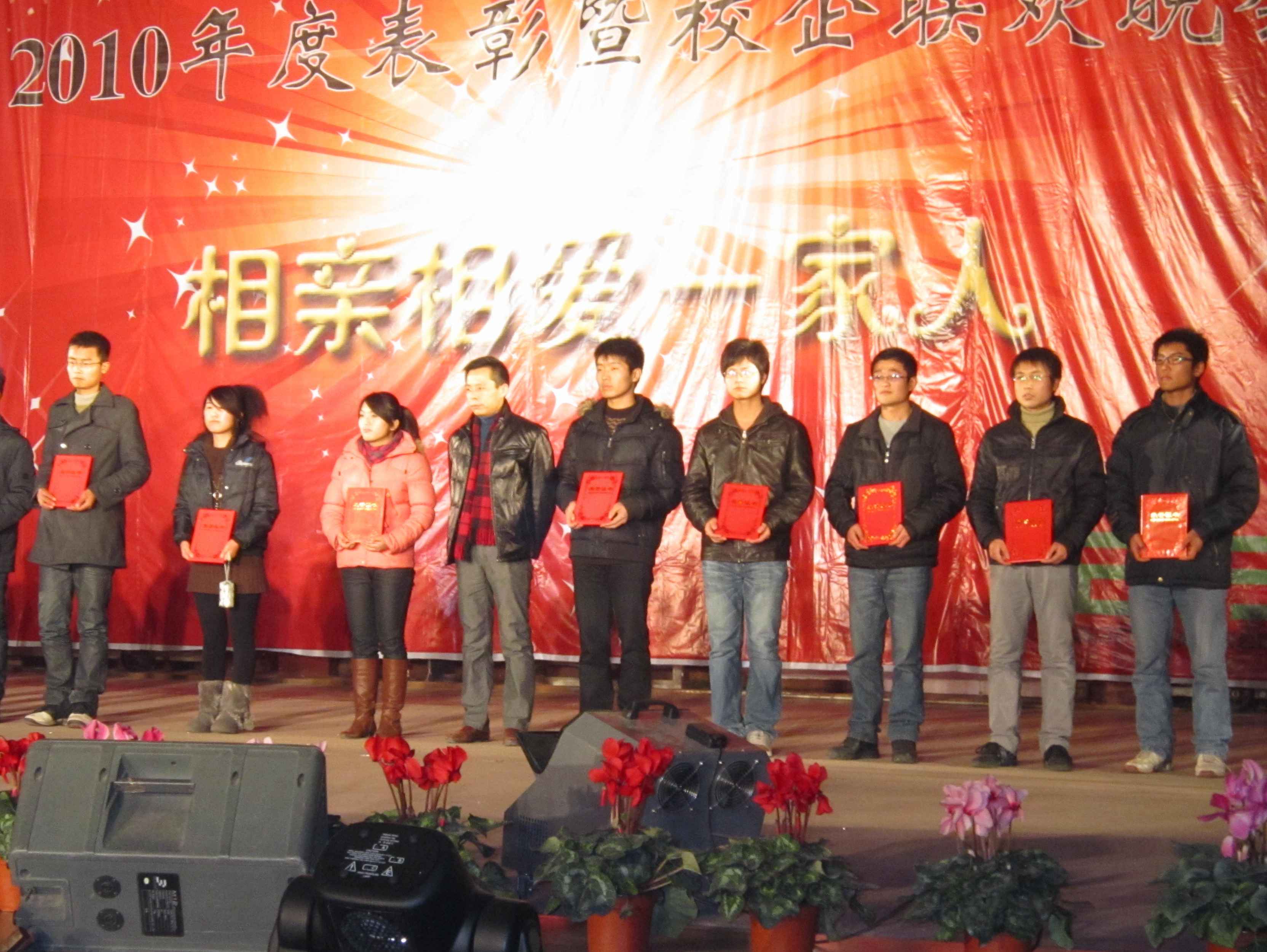 在晚会进行过程当中,穿插了bevitor伟德国际19462010年度表彰。党总支书记梁惠和经理孙亚峰对一年来bevitor伟德国际1946举办的两期职业技能竞赛一等奖获得者进行了表彰,徐州天力建筑装饰有限公司总经理李宝珠、江苏水立方建筑装饰设计院副经理胡艳琴和上海睿合广告传播有限公司徐州分公司总经理田建龙分别为企业奖学金获得者颁发荣誉证书,徐州清大吉博力建材有限公司总经理张吉鹏为“清大吉博力”特色班的35位同学颁发了企业助学金。
