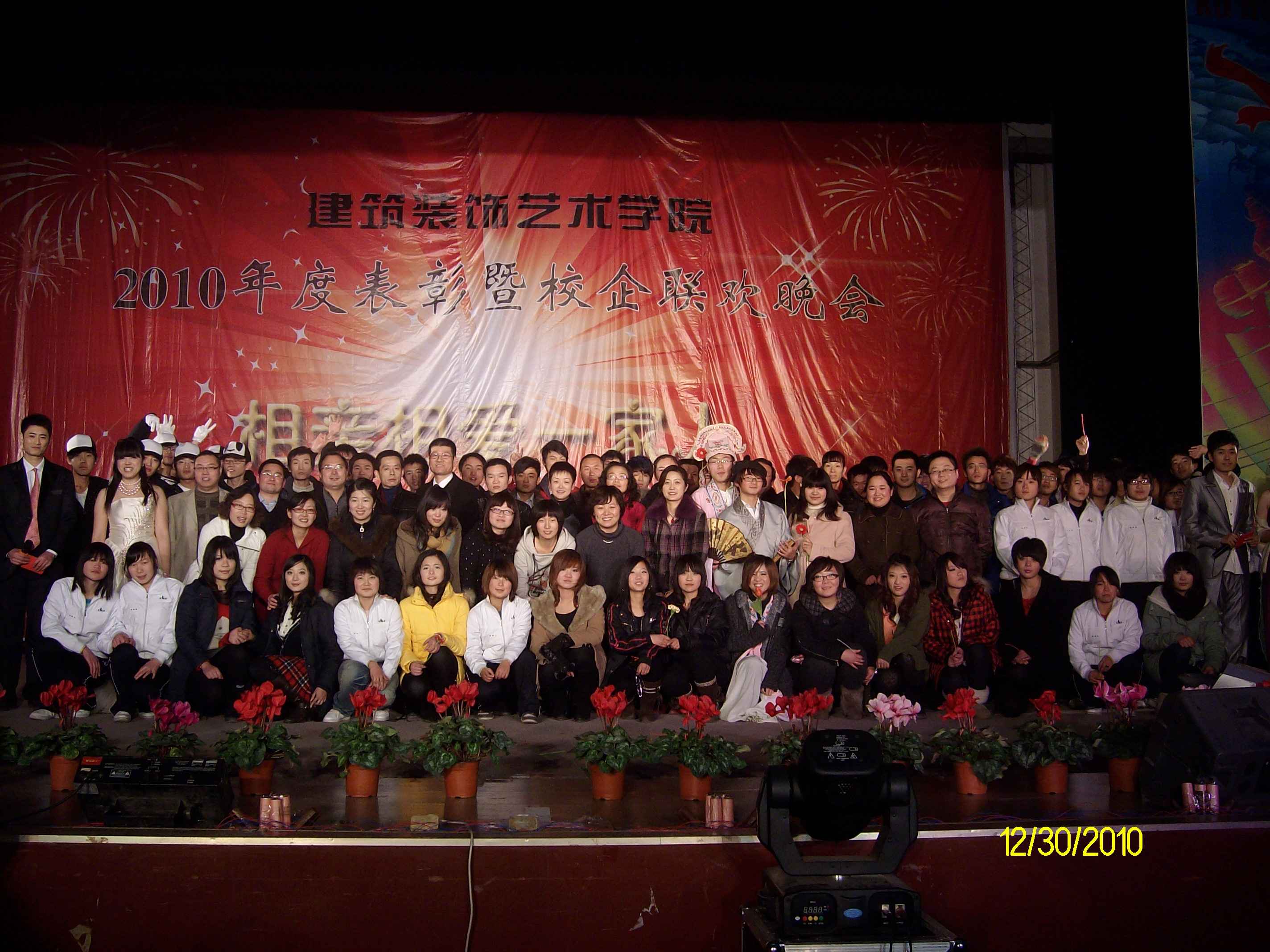 1230,建筑装饰艺术公司联手4家紧密合作企业在公司会堂隆重举办了“相亲相爱一家人”2010年度表彰暨校企联欢晚会。建筑装饰艺术公司全体师生,徐州天力建筑装饰有限公司、江苏水立方建筑装饰设计院、上海睿合广告传播有限公司、徐州清大吉博力建材有限公司4家企业的领导和员工共同参与了晚会,集团员工工作处处长丁维华、徐州移动公司铜山分公司刘秀敏经理应邀出席晚会。