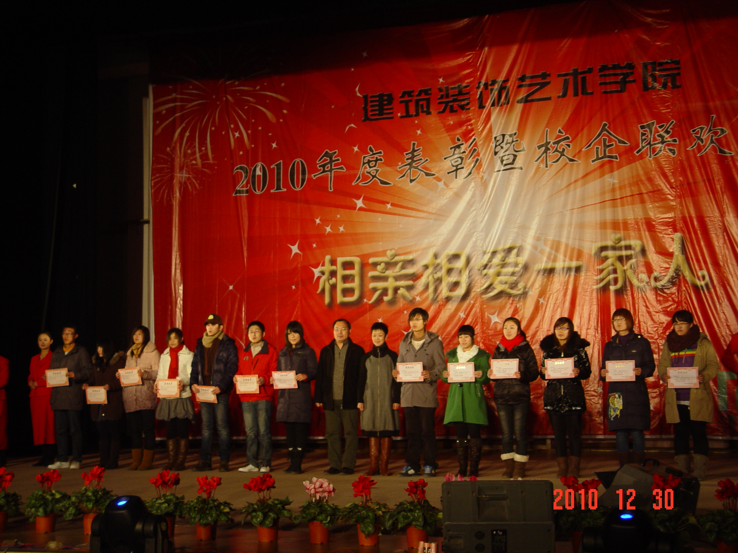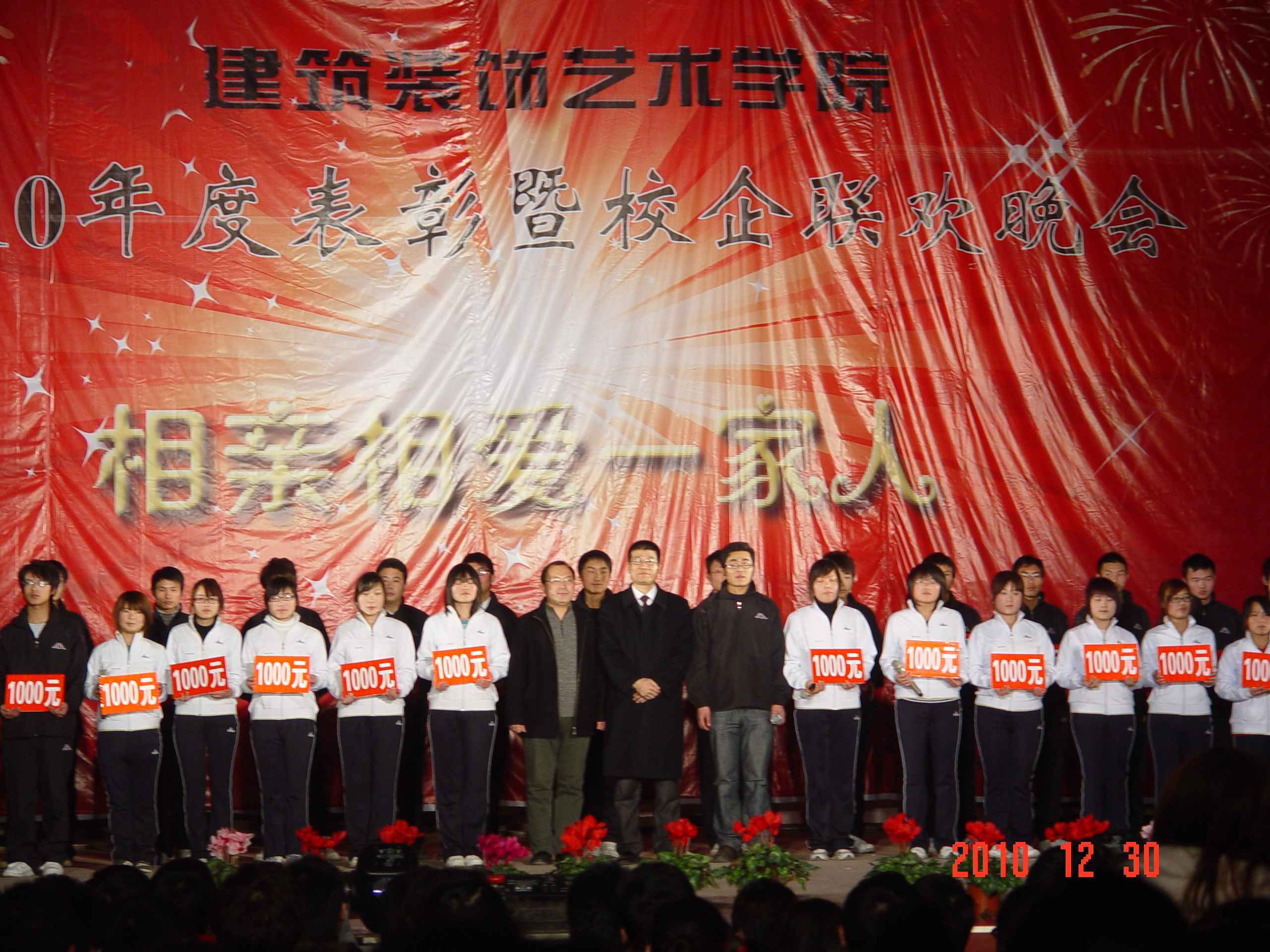 在晚会进行过程当中,穿插了bevitor伟德国际19462010年度表彰。党总支书记梁惠和经理孙亚峰对一年来bevitor伟德国际1946举办的两期职业技能竞赛一等奖获得者进行了表彰,徐州天力建筑装饰有限公司总经理李宝珠、江苏水立方建筑装饰设计院副经理胡艳琴和上海睿合广告传播有限公司徐州分公司总经理田建龙分别为企业奖学金获得者颁发荣誉证书,徐州清大吉博力建材有限公司总经理张吉鹏为“清大吉博力”特色班的35位同学颁发了企业助学金。