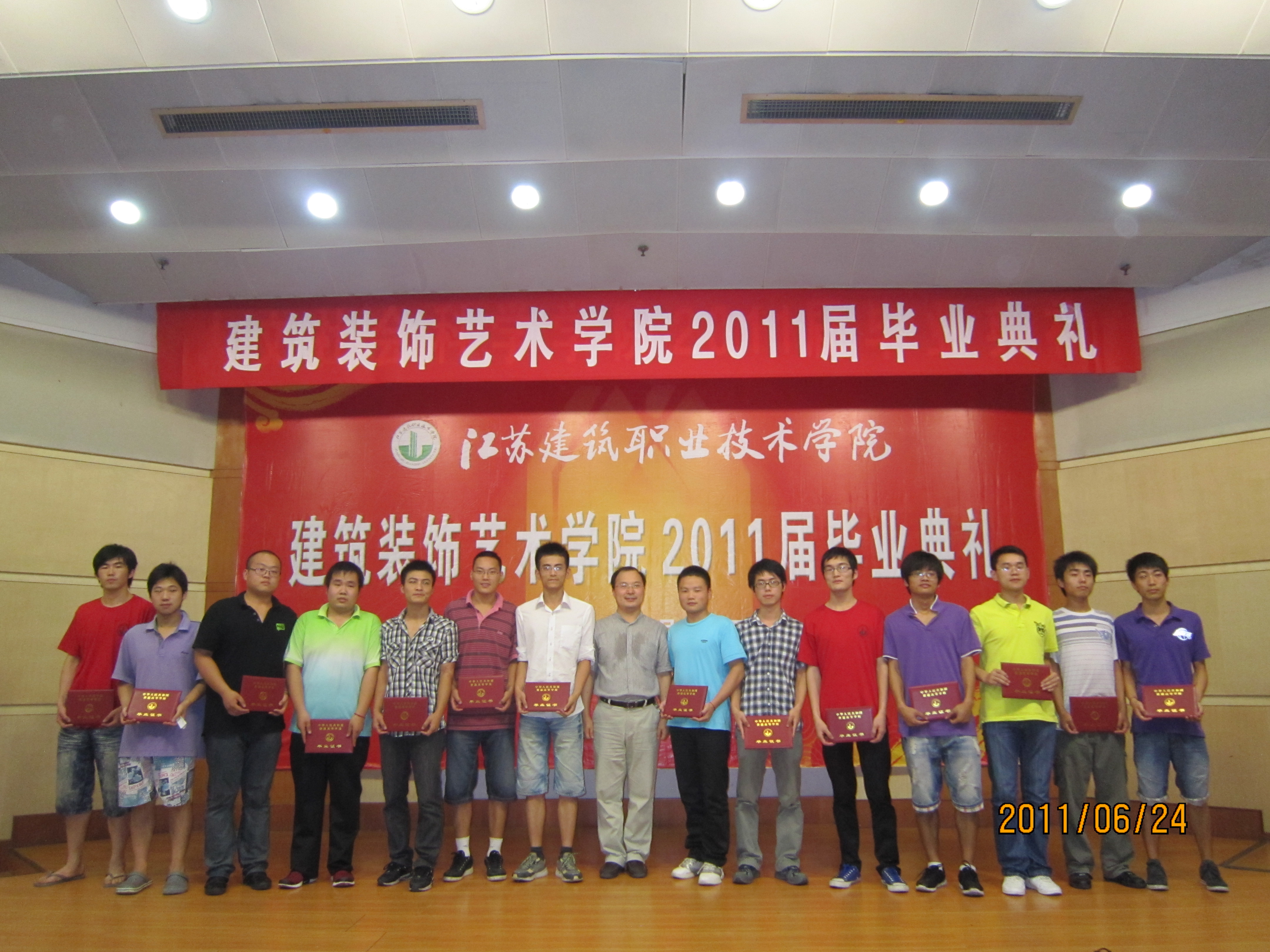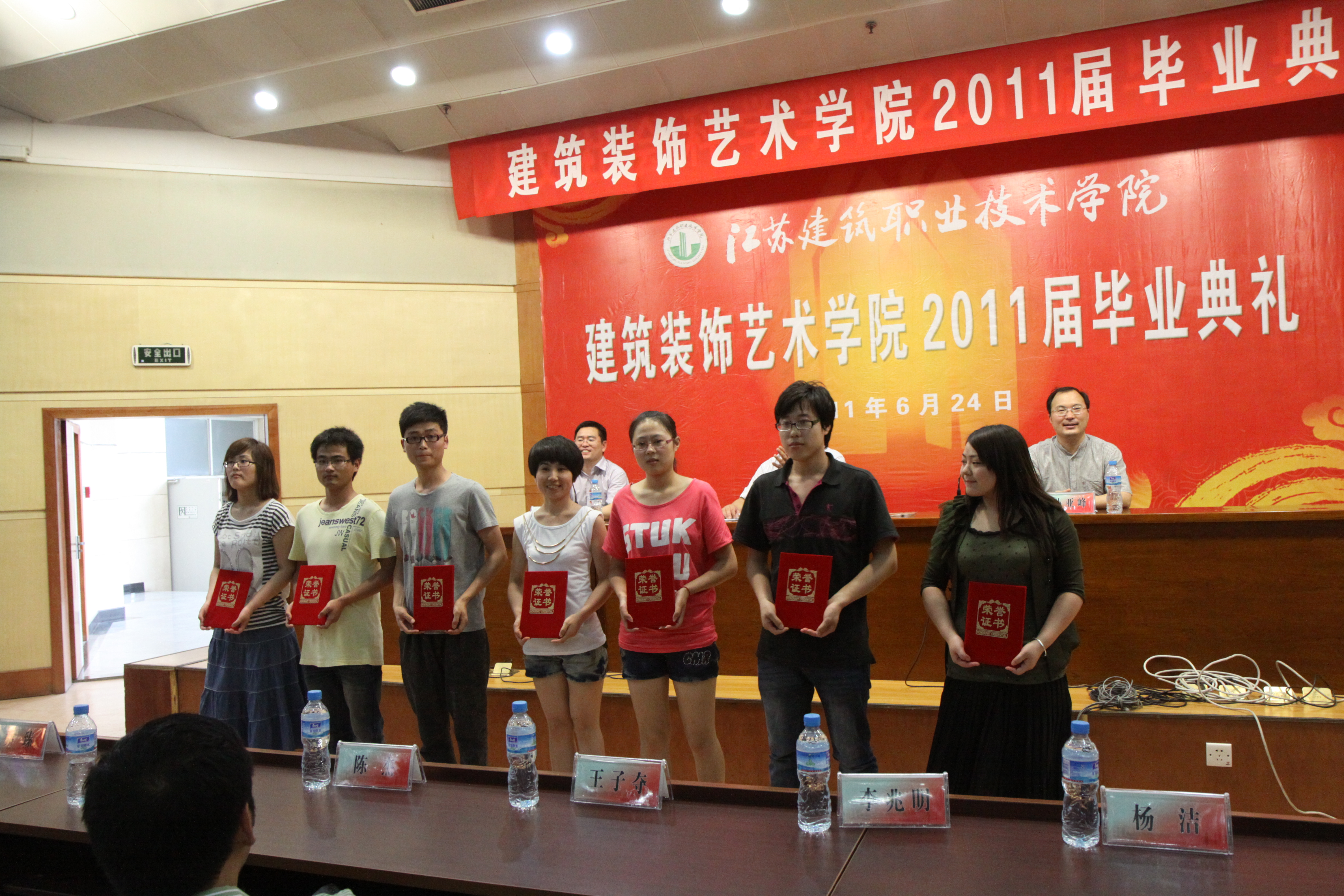 在庄严的国歌声中,毕业典礼正式拉开帷幕。黄立营书记宣读了建筑装饰艺术公司2011届优秀毕业生、2011届毕业设计作品展获奖文件,并对获奖员工颁发了荣誉证书。毕业班辅导员李芬老师代表全体老师向圆满完成学业的同学们表示热烈祝贺;原校员工会主席、公司毕业生代表姜东明通过对老员工活的回顾,表达了对母校、老师、家长的感激以及对母校的美好祝愿;在校生代表朱星对学长们表示了衷心的祝贺和祝福。最后,经理孙亚峰发表了热情洋溢的致辞,并亲自为每一位毕业生颁发了毕业证书,现场气氛达到高潮。