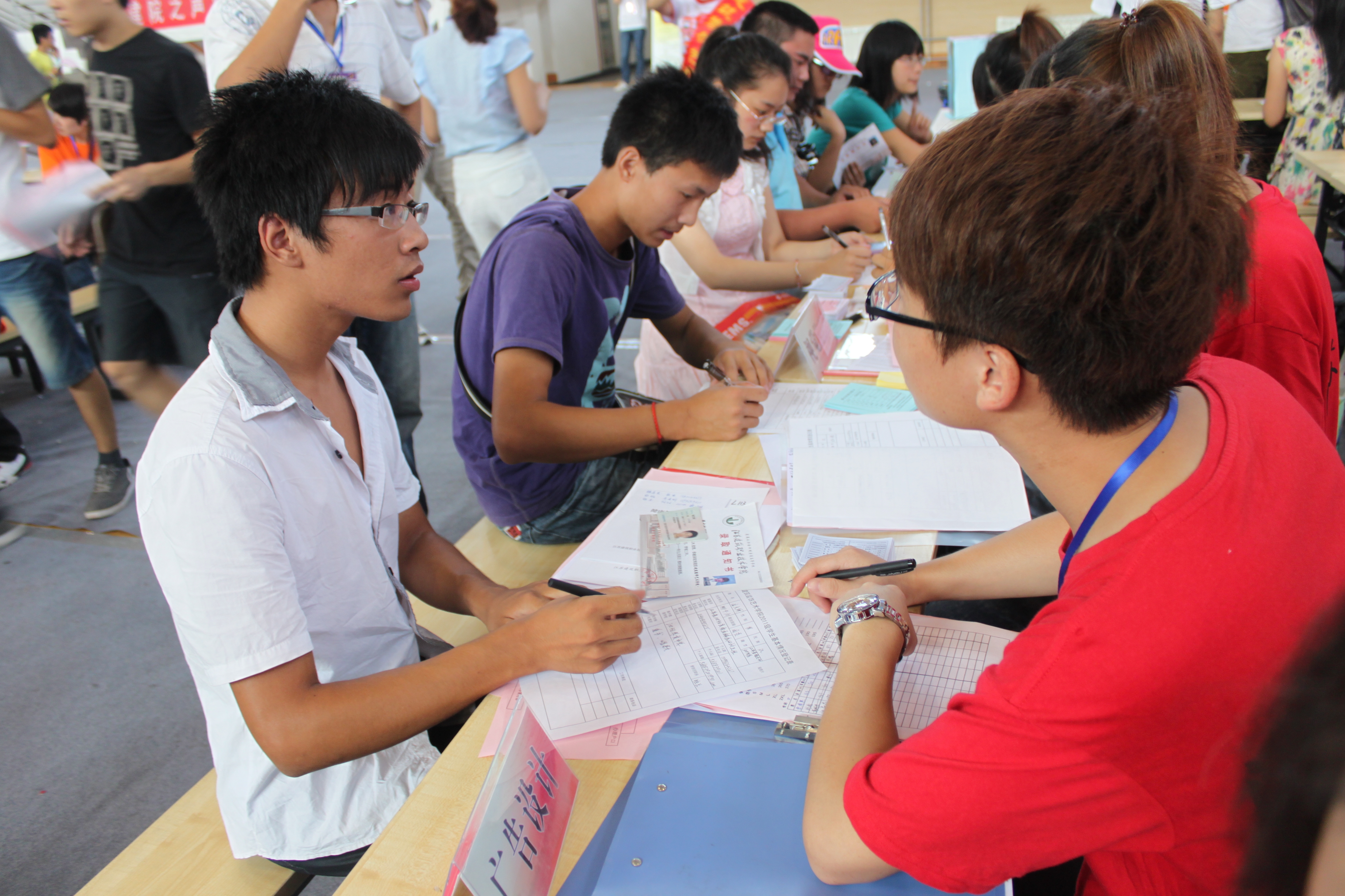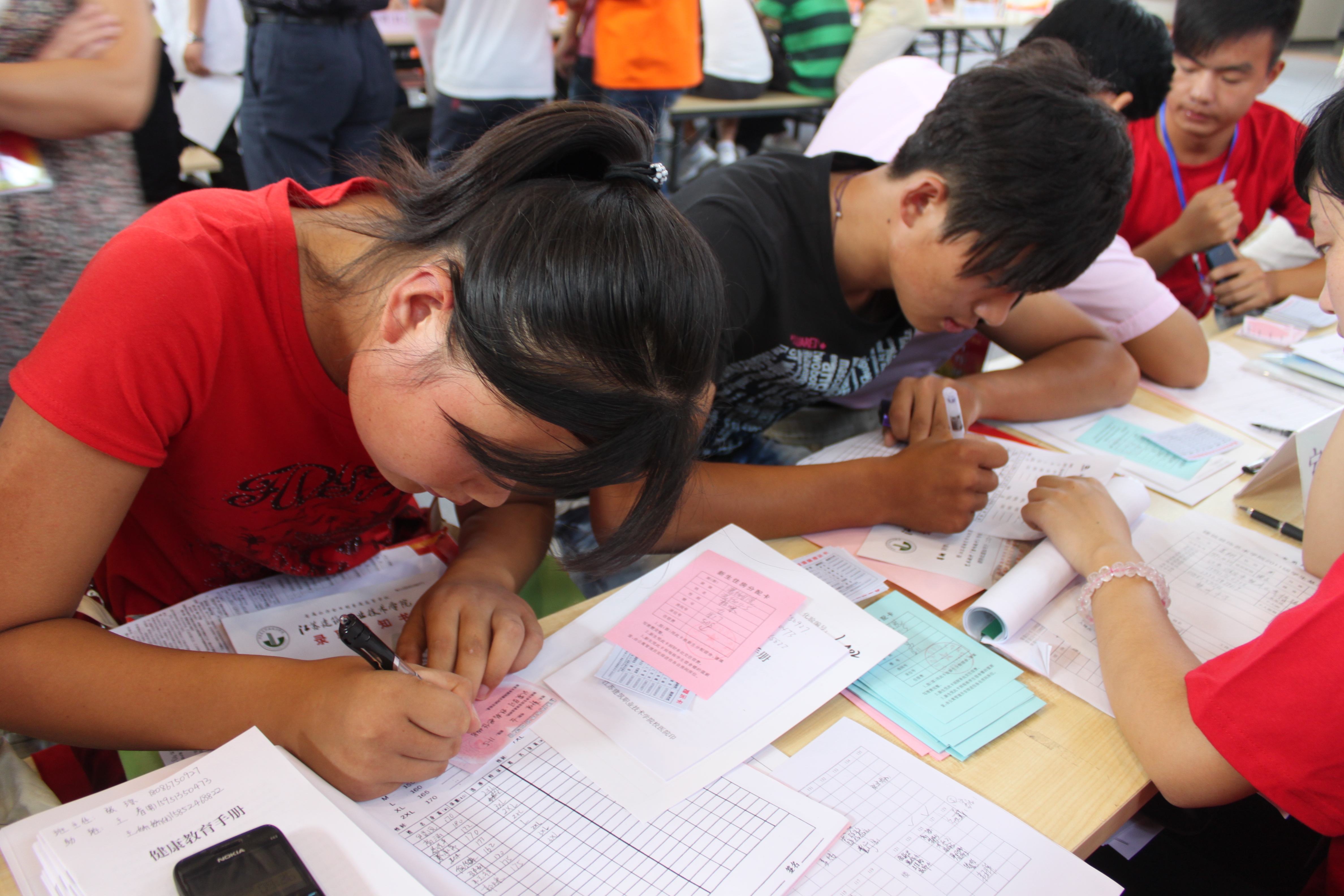 场内,新同学认真填写基本信息登记表