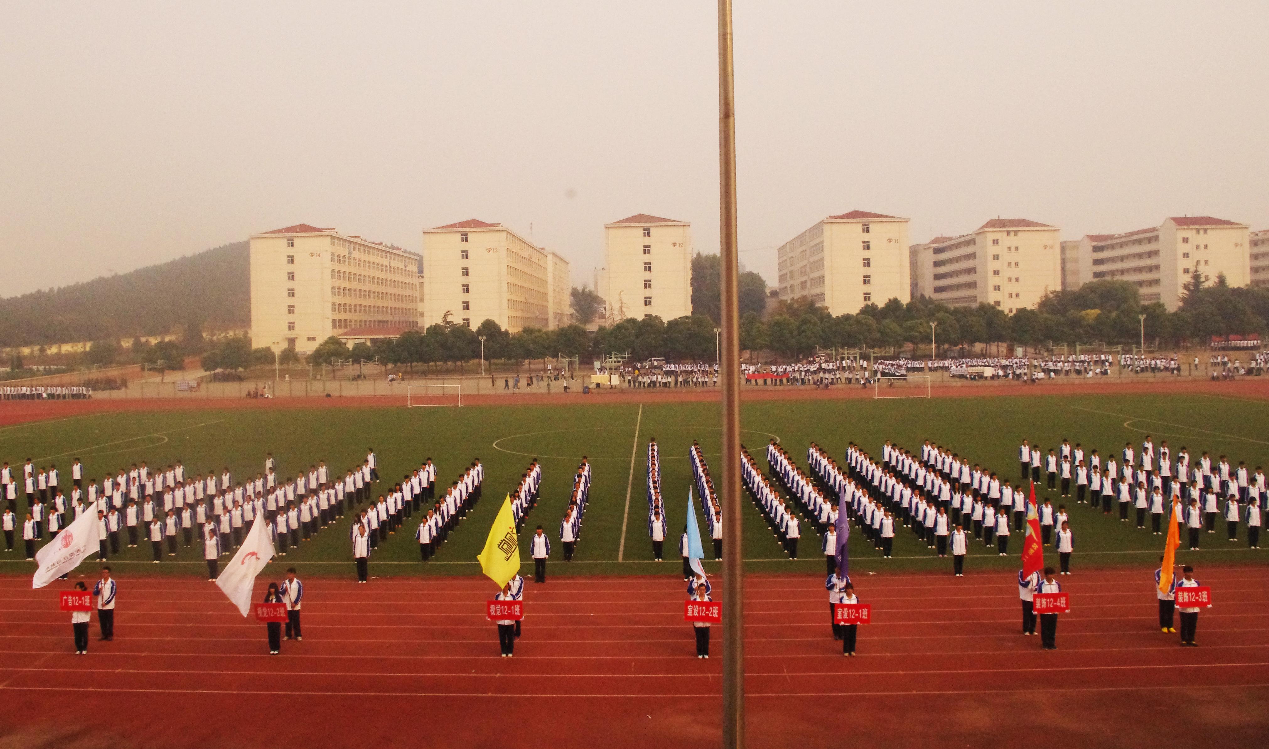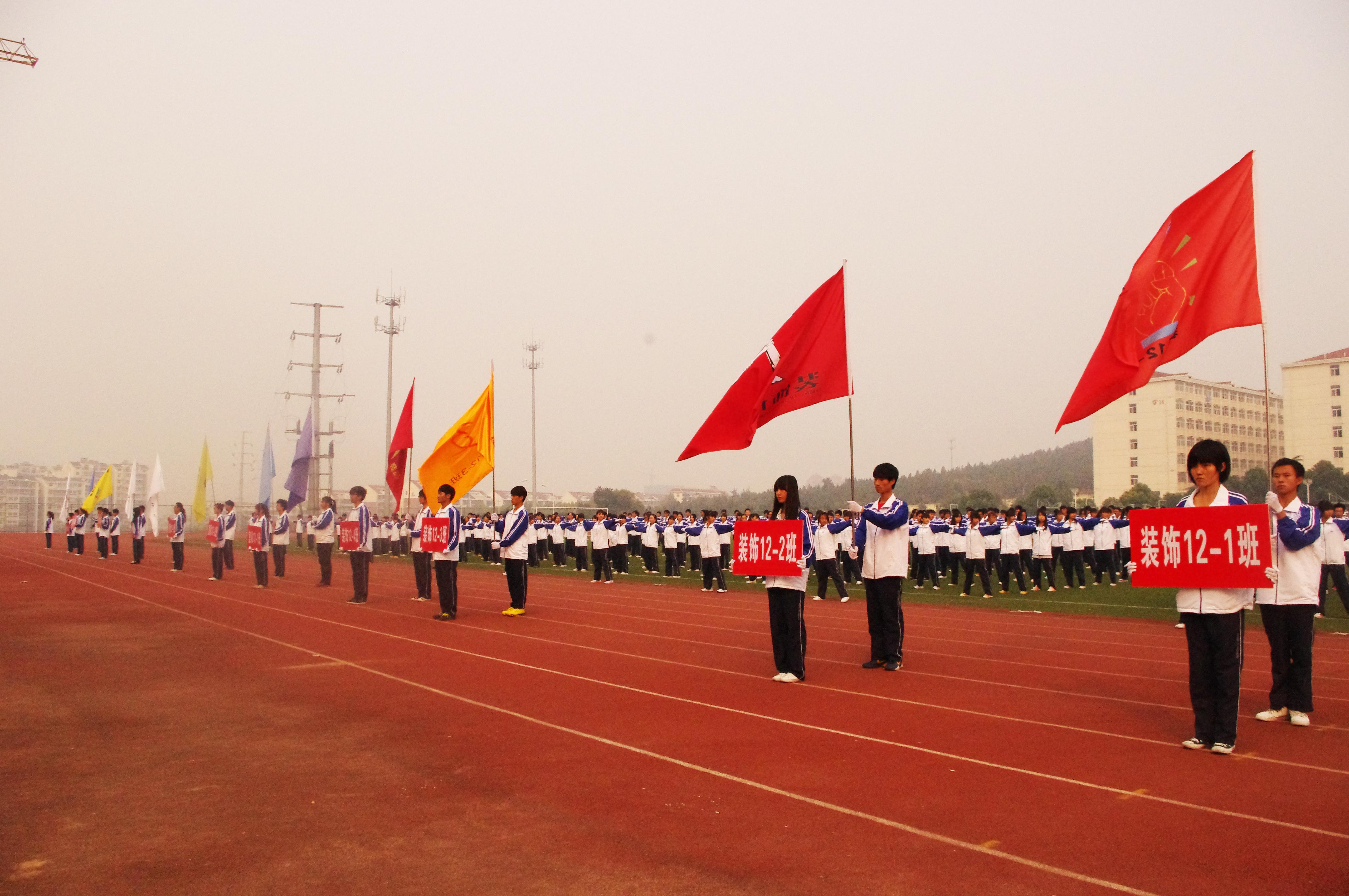 在比赛中,各参赛班级都精心准备了鲜艳的班旗,凝练了激昂的口号,“创先争优、勇于拼搏”、“脚踏实地练技能、欢喜鼓舞铸明天 ”,口号响彻全场,震撼人心。在接下来的广播操比赛中,各班级同学穿上整齐的军训服,伴随着第九套广播操音乐,配合高度默契,动作整齐划一,成为比赛场上一道亮丽的风景。