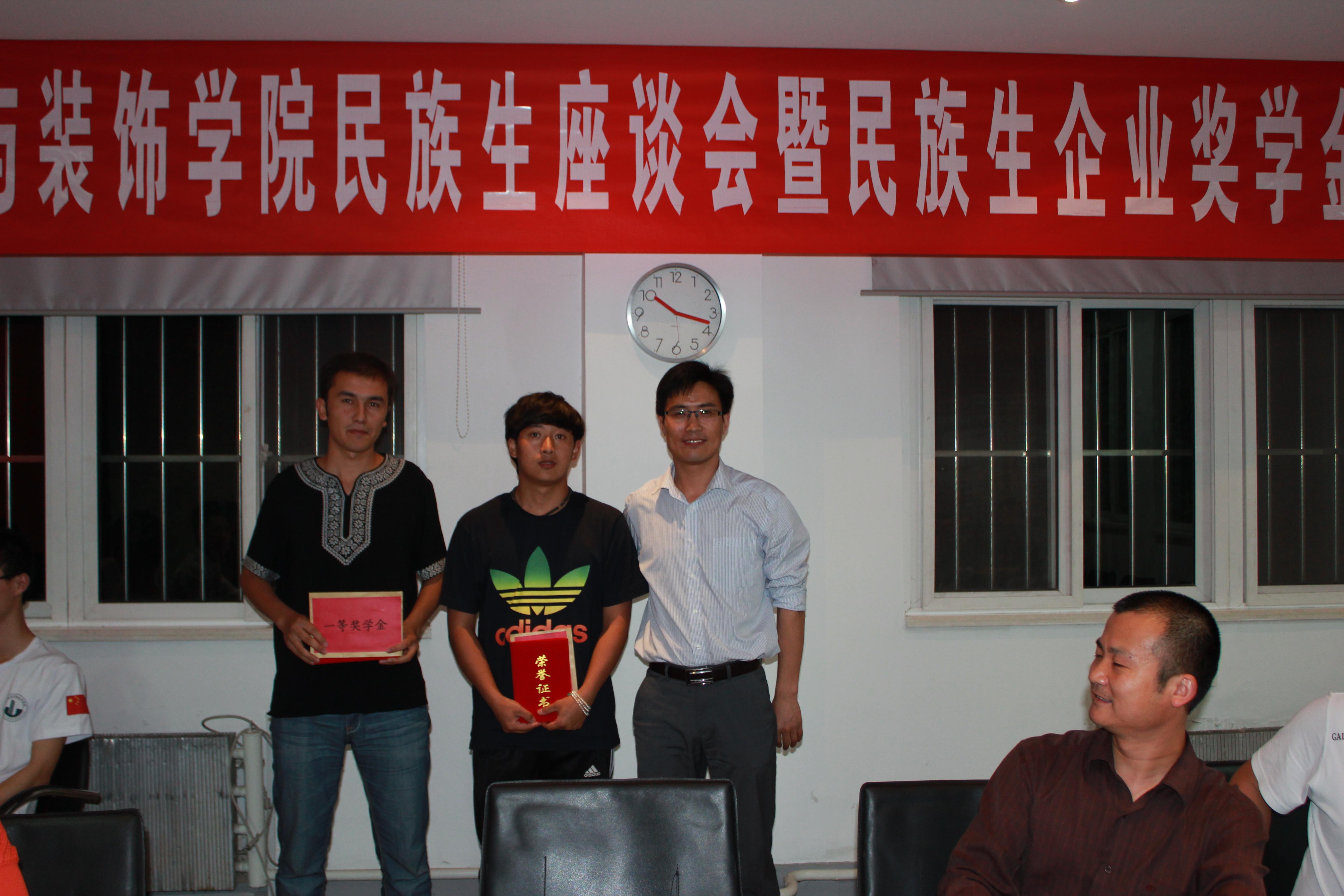 仪式上,娄书记简单介绍了此次民族生奖学金评定的相关细则,并且谈了自己对于新疆、西藏的认识,就此拉近了他和民族生之间的距离。接着,副经理陈志东宣读了表彰决定,随后奖学金获得者上台领奖并由获奖代表——努尔艾合麦江发言致谢。至此,整个仪式进入高潮,努尔艾合麦江用他那不太标准的普通话表现出来的真诚,感动了现场的每一位老师和民族生,大家对他报以热烈的掌声和鼓励。