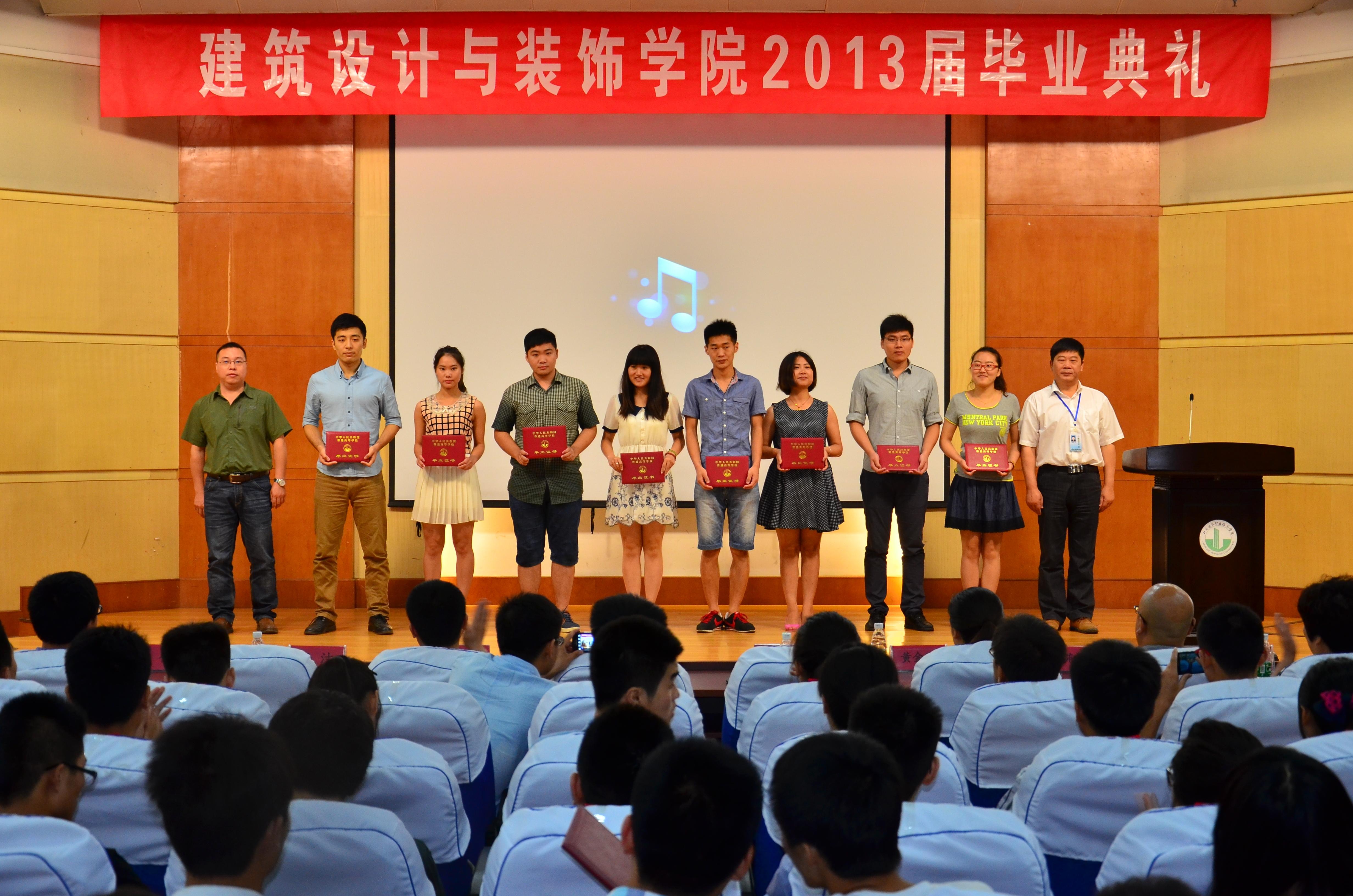 黄立营与杨洁为室设10-1班同学颁发毕业证书