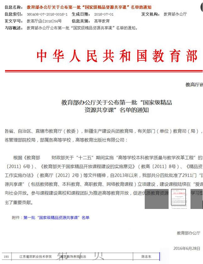 公司《建筑装饰表现技法》获批国家级精品资源共享课