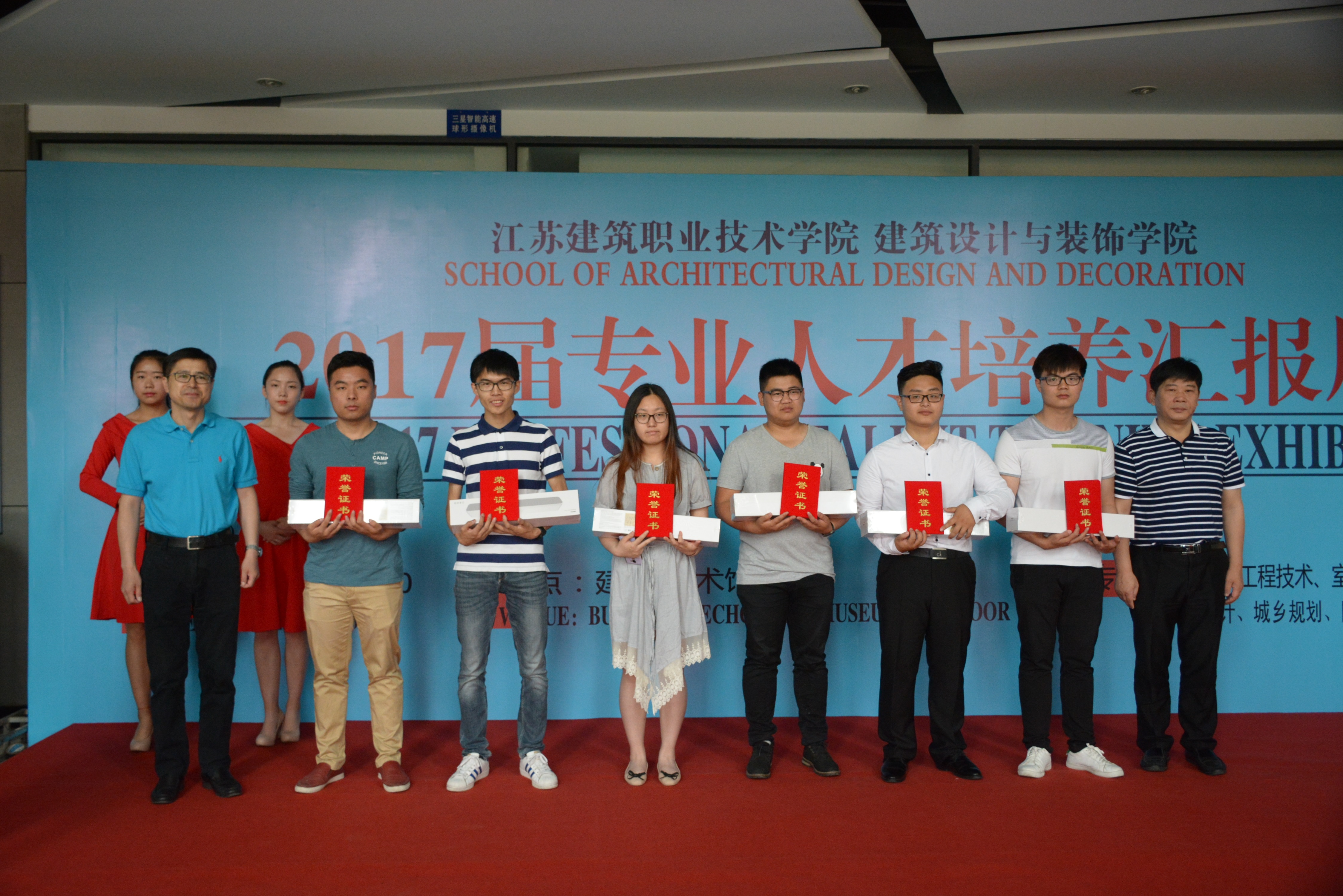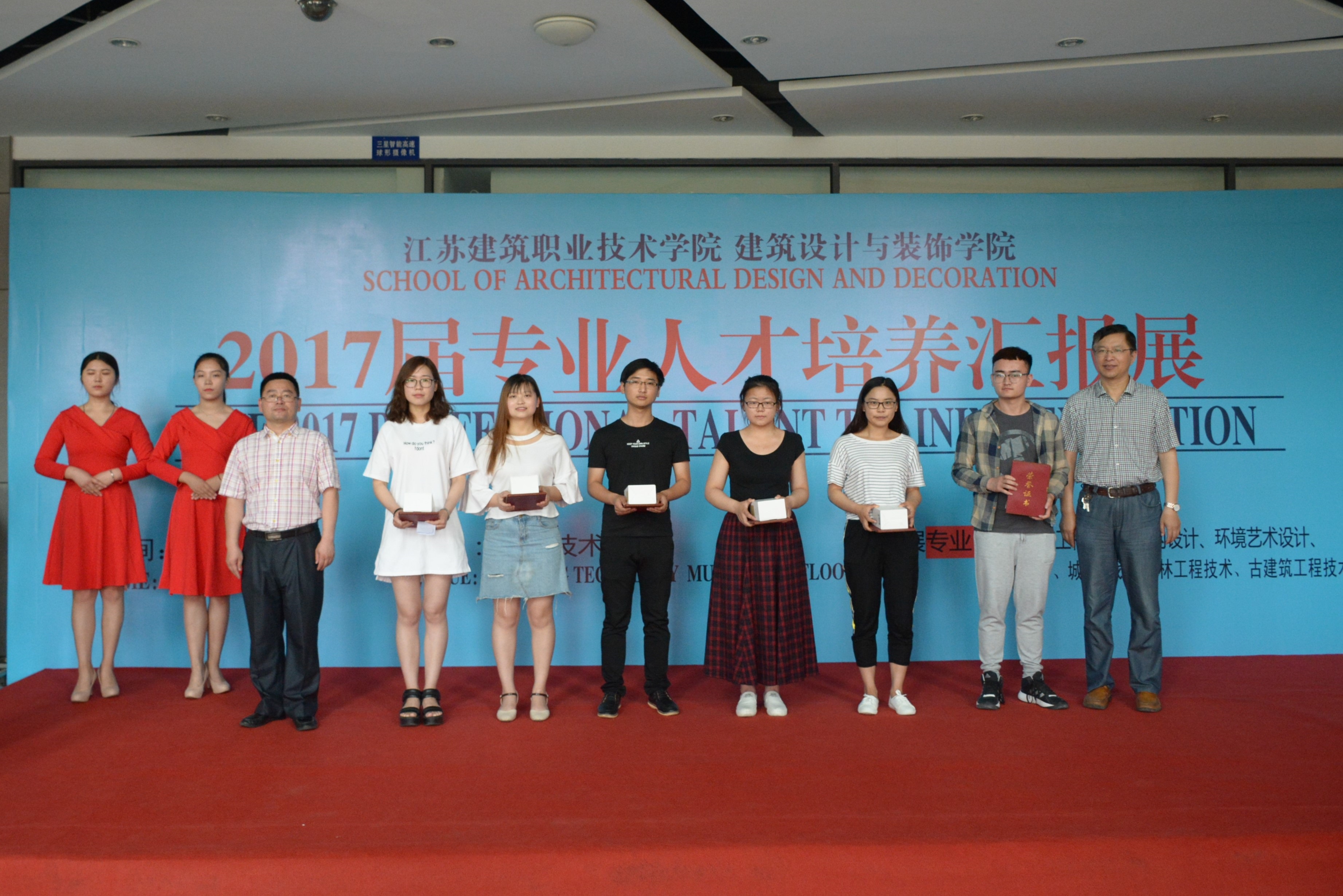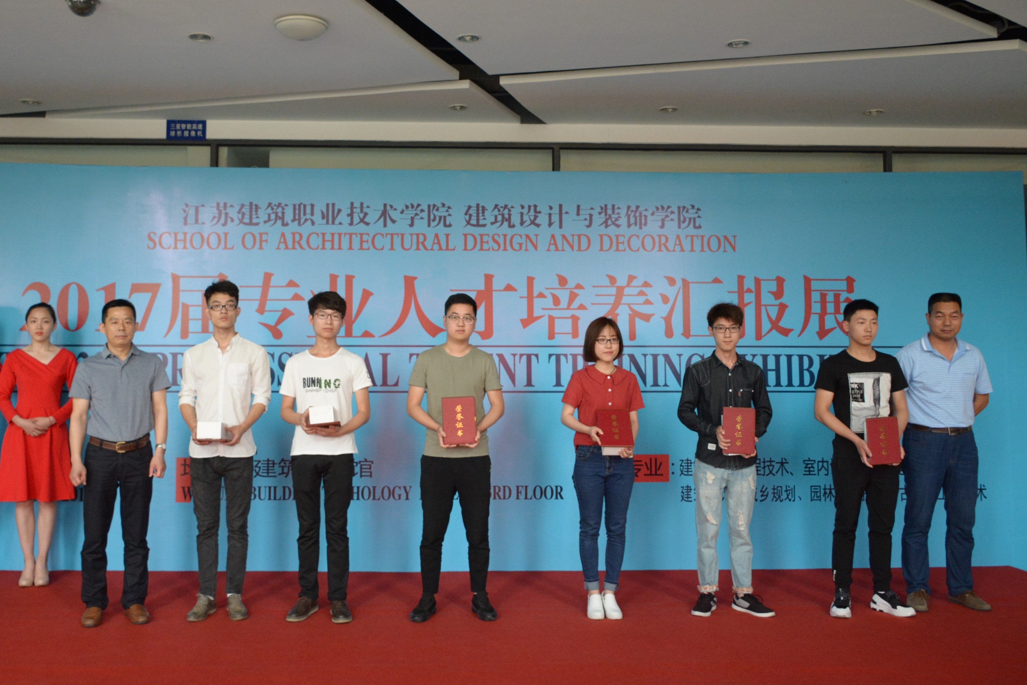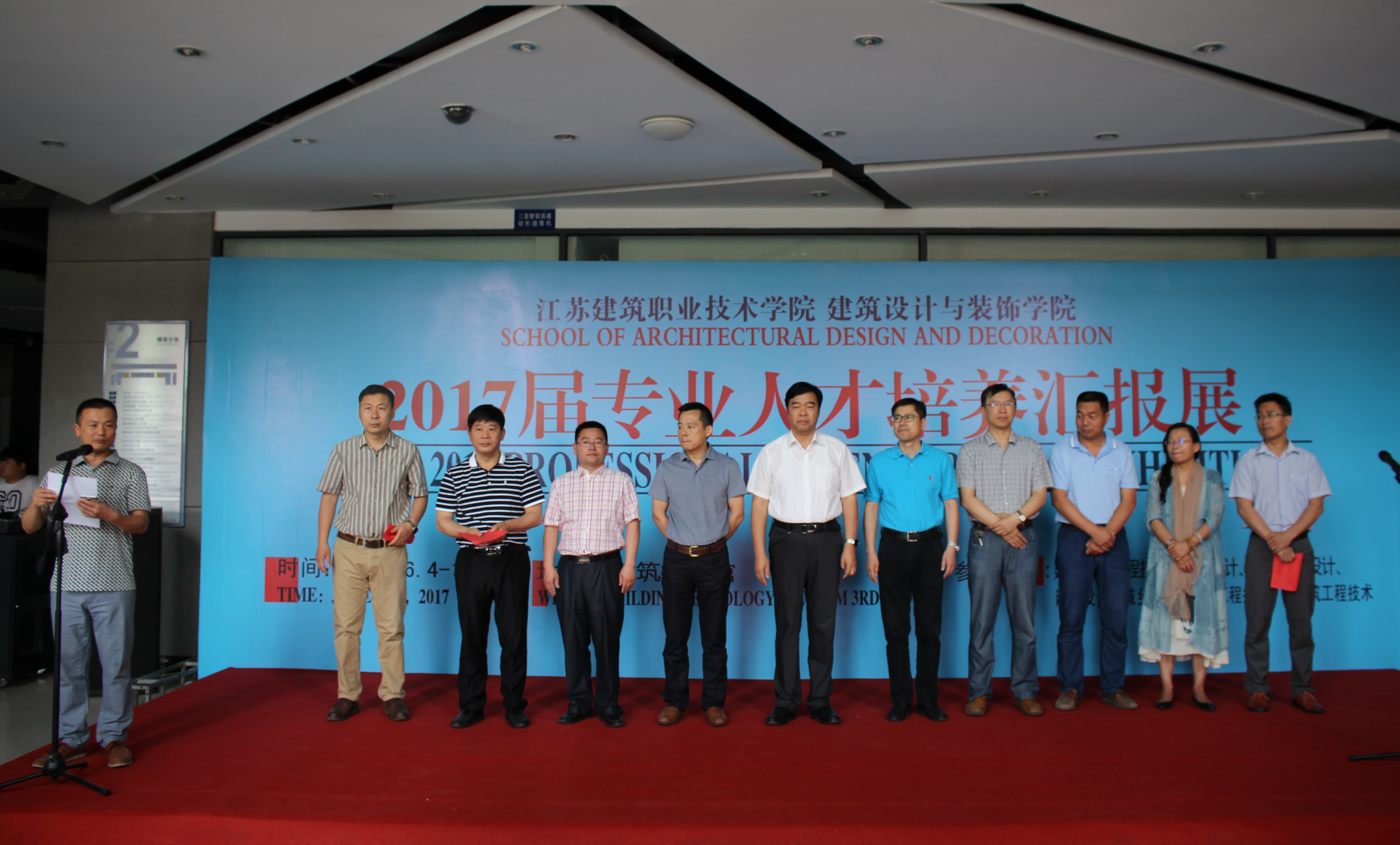 6月4日,建筑设计与bevitor伟德国际19462017届专业人才培养汇报展在建筑技术馆举行。校领导孙进经理、曾凡远副经理、宣传部、质量管理办公室、实验实训中心等职能部门领导,天正装饰江苏有限公司负责人应邀出席开幕式,并为毕业设计获奖员工、优秀专业教师颁奖。