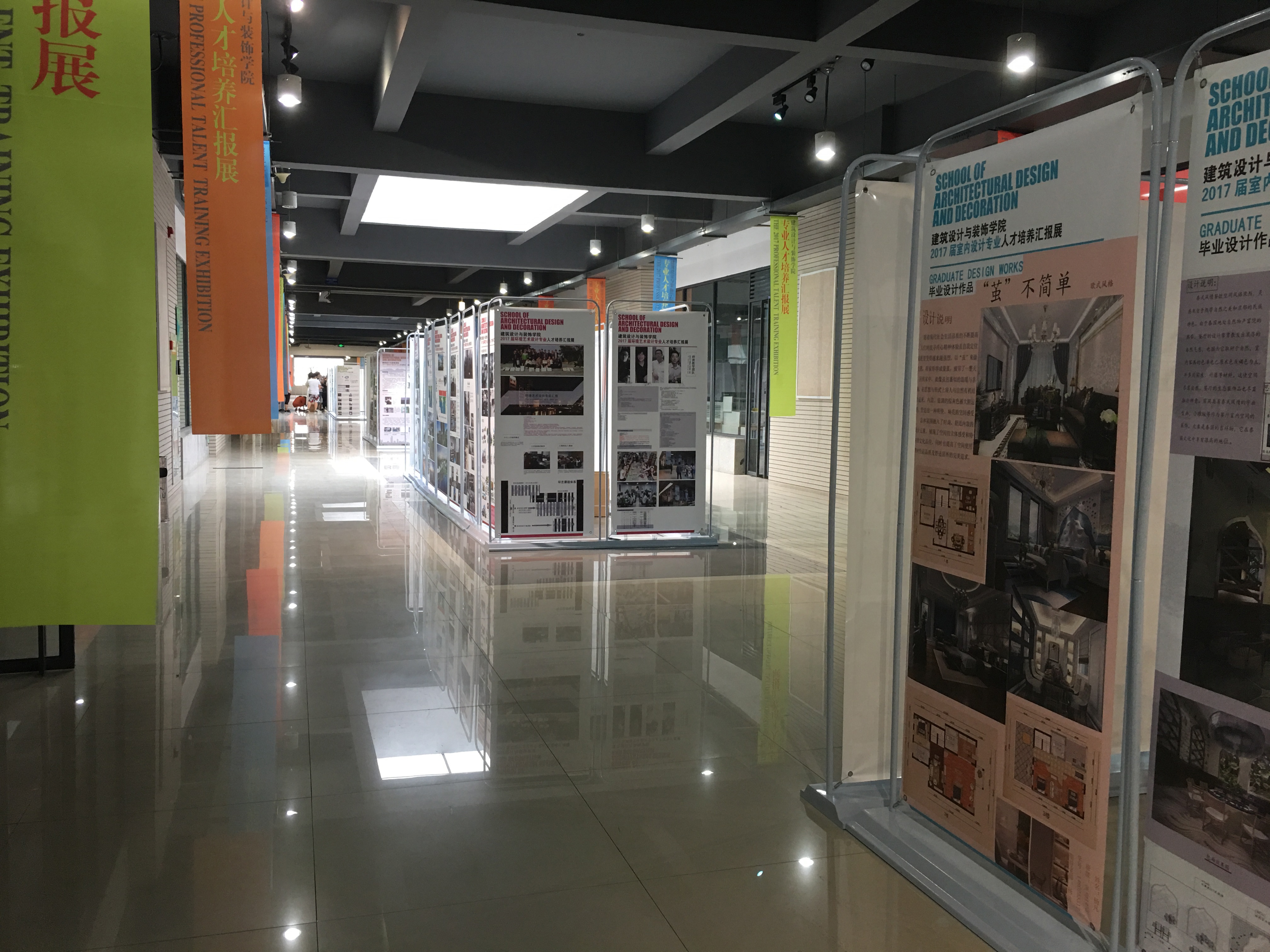 设计公司2017届专业人才培养汇报展旨在对人才培养情况进行梳理与诊断,涵盖了人才培养过程与毕业作品,在展览角度和内容上进行创新。据悉,共有建筑装饰工程技术、室内设计技术、环境艺术设计、建筑设计、园林工程技术、古建筑工程技术、城乡规划等7个专业596名毕业生参展。