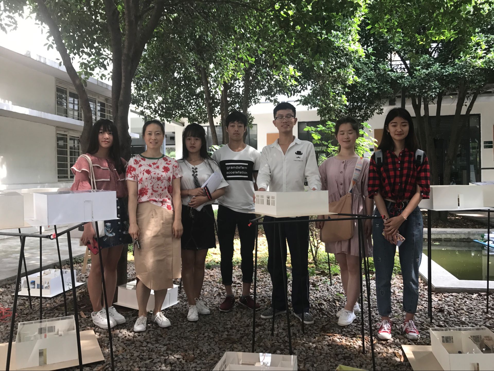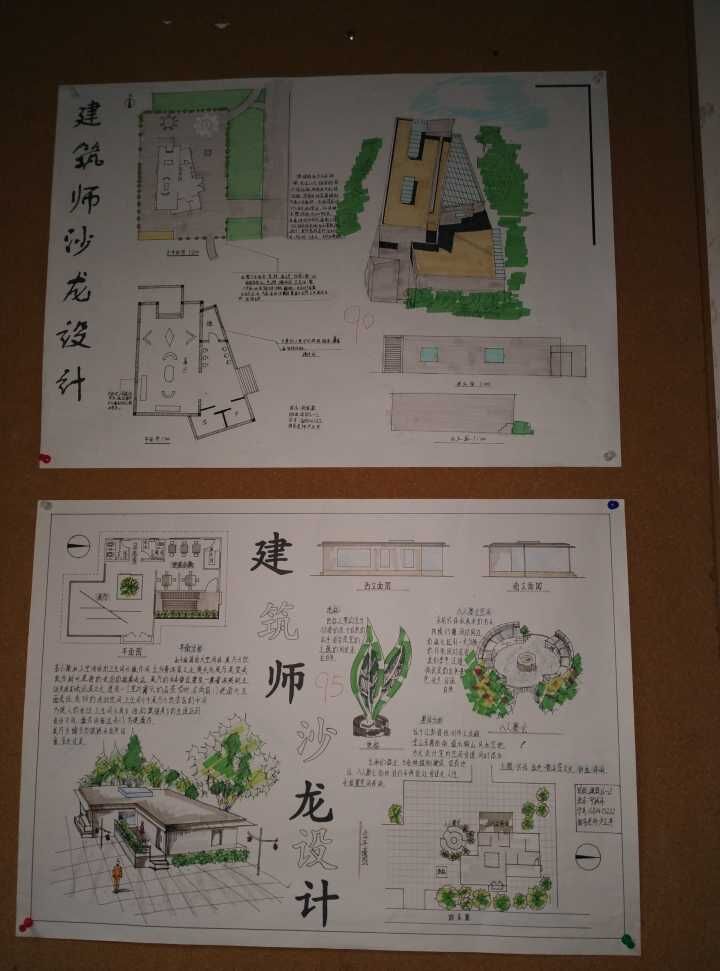 本次展出内容有:建筑先例分析模型、宿舍空间设计图纸及模型、建筑师沙龙图纸等。参展同学包括建筑设计技术专业一年级所有同学,展架和海报均由同学自己设计制作。