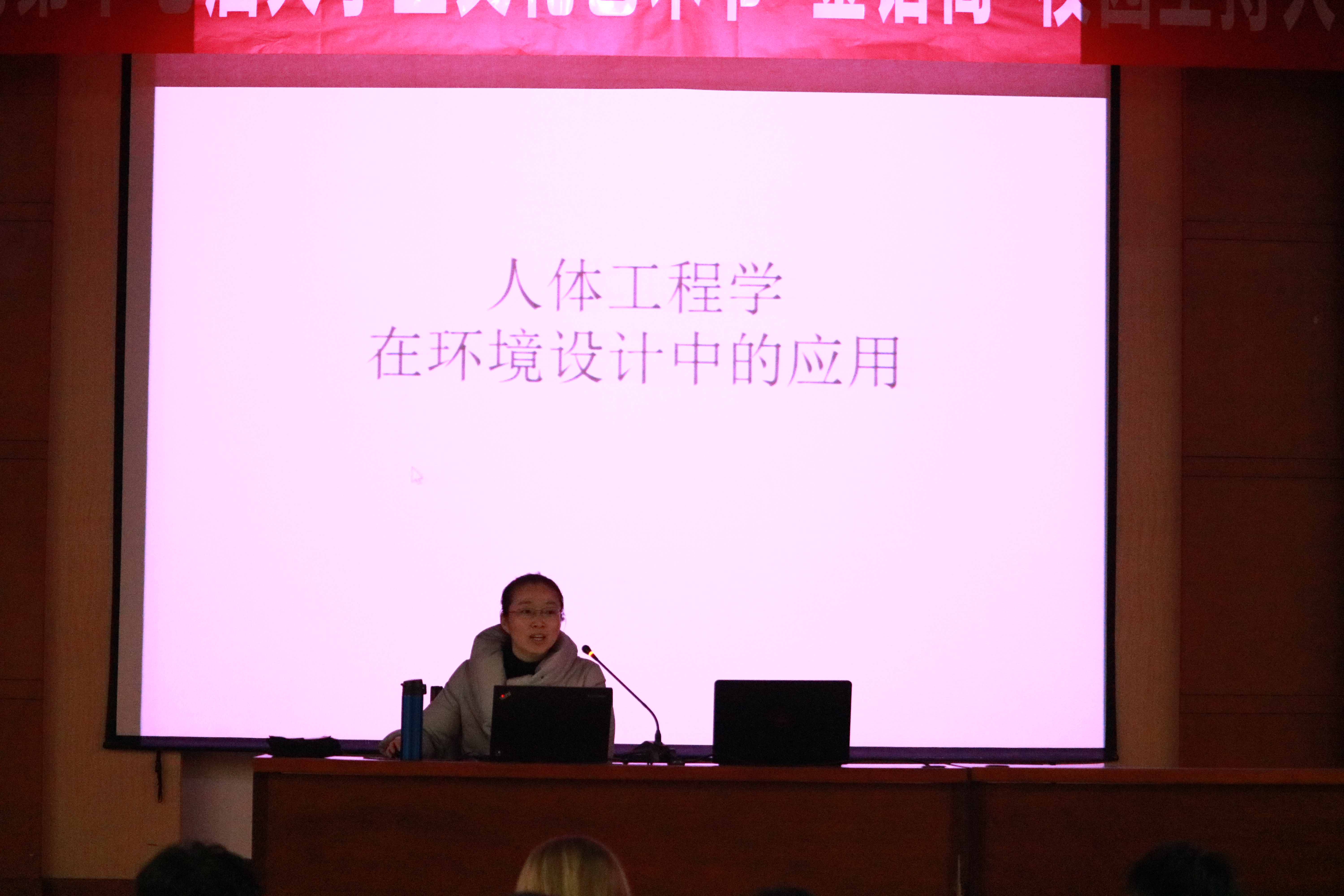 2017年11月28号晚7点30分,装饰专业王睿老师在报告厅围绕“人体工程学在环境设计中的应用”为主题开展专业讲座。来自装饰专业、环艺专业、室设专业约180名员工聆听了该场讲座。