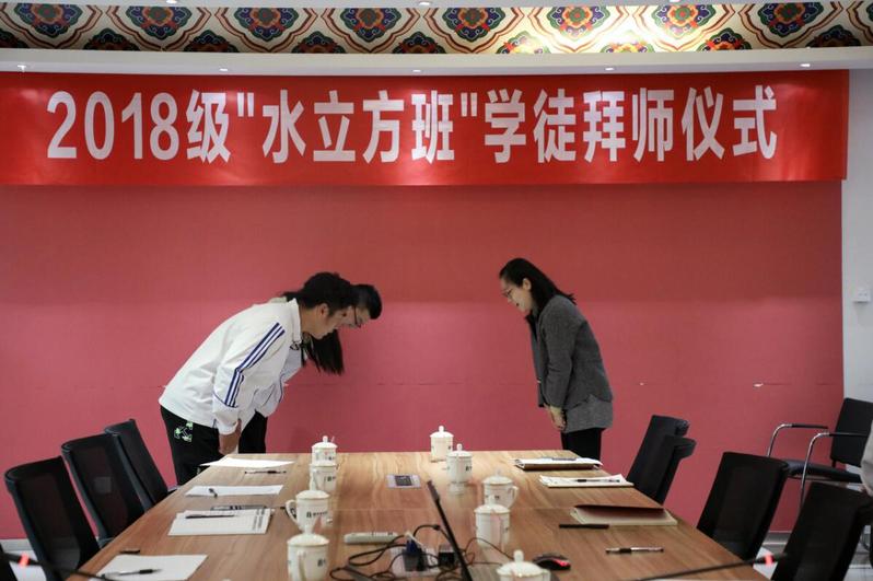 10月26日上午,bevitor伟德国际1946“天正班”和“水立方班”学员拜师仪式在公司会议室隆重举行。公司经理陈志东、副经理江向东、天正建筑装饰江苏有限公司总经理朱攀登、江苏水立方建筑装饰设计研究院经理胡艳琴、装饰专业主任杨洁、企业导师及企业班45名学员参加了拜师仪式。在天正装饰办公室主任王洁主持下,员工向指导师傅行拜师礼。