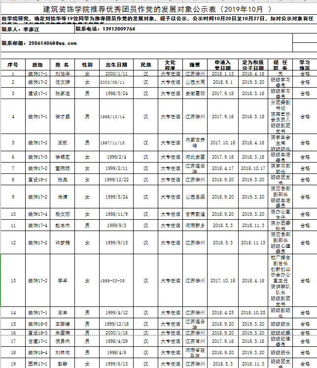 bevitor伟德国际1946推荐优秀团员作党的发展对象公示表(2019年10月 )