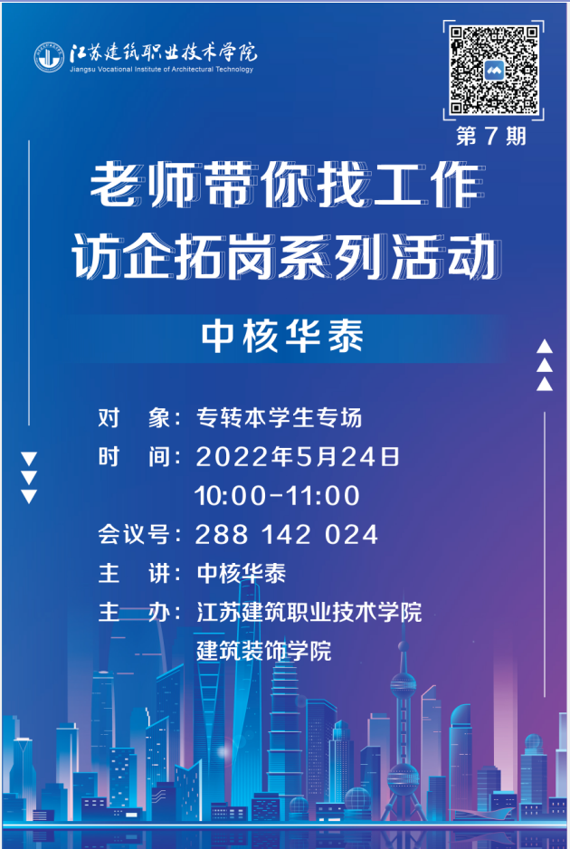 2022年5月24日15:00bevitor伟德国际1946开展了第七期“老师带你找工作”即访企拓岗线上招聘活动,此次招聘活动主要针对专转本员工,到访企业是中核华泰建设有限公司。伟德国际1946bv经理沈士德教授,bevitor伟德国际1946党总支书记娄志刚、就业辅导员胡晓爽参加此次云招聘活动。