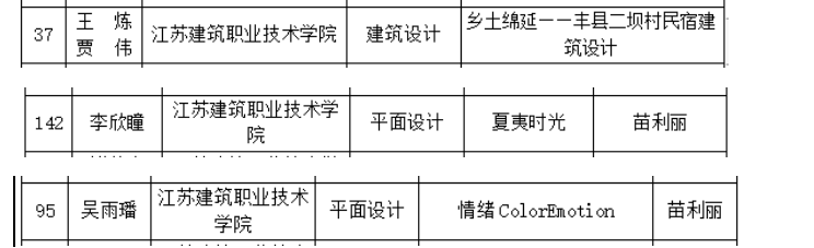 近日,江苏省教育厅公布了“融通并茂——第五届江苏省高校设计作品展”的评选结果。公司师生冲出重围,喜获奖项3项。王炼、贾伟老师的作品《乡土绵延--丰县二坝村民宿建筑设计》获教师组“入围奖”,苗利丽老师指导的建设21-4班吴雨璠的作品《情绪ColorEmotion》获员工组“优秀奖”、装饰21-7班李欣瞳的作品《夏夷时光》获员工组“入围奖”。