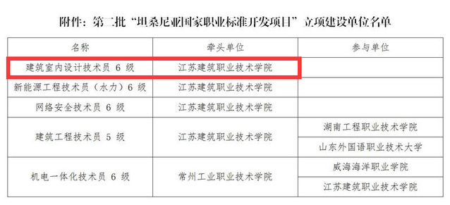 10月19日,中非职业教育联盟公布第二批“坦桑尼亚国家职业标准开发项目”立项建设单位名单,我院牵头、参与申报的“建筑室内设计技术员NTA6”职业标准成功获批立项。