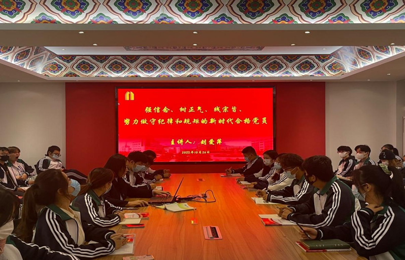 培训班上,装饰公司党总支书记娄志刚向全体入党积极分子专题讲授《中国共产党历史》,详细解读了党的发展历程,通过党史,阐明道理,解答青年政治上、思想上的困惑。校办公室副主任李彦江专题讲授《中国共产党章程》,通过对新党章对比学习,对党员的先进性要求有了更加清晰具体的理解。校宣传部副部长袁祯专题讲授《牢记初心使命,坚决维护两个确立——学习党的十九届六中全会和历史决议精神》,提出了要争做树立理想、学习本领、敢于担当新时代合格青年,始终在政治立场、政治方向、政治原则、政治道路上同以习近平同志为核心的党中央保持高度一致。装饰公司党总支副书记刘爱萍讲授《强信念、树正气、践宗旨、做守纪律和规矩的新时代合格党员》,要求全体入党积极分子坚定理想信念,提高党性修养,始终牢记全心全意为人民服务的宗旨,做守纪律懂规矩的新时代合格党员。校组织部副部长李国琴讲授《中国共产党的优良作风》,明确了做合格党员的标准,并将其作为自身行动的指引,做到内化于心、外化于行。辅导员张志荣老师组织入党积极分子一起学习入党积极分子培训教材、介绍党员发展程序,并强调不仅要从组织上入党,更是从思想上入党。