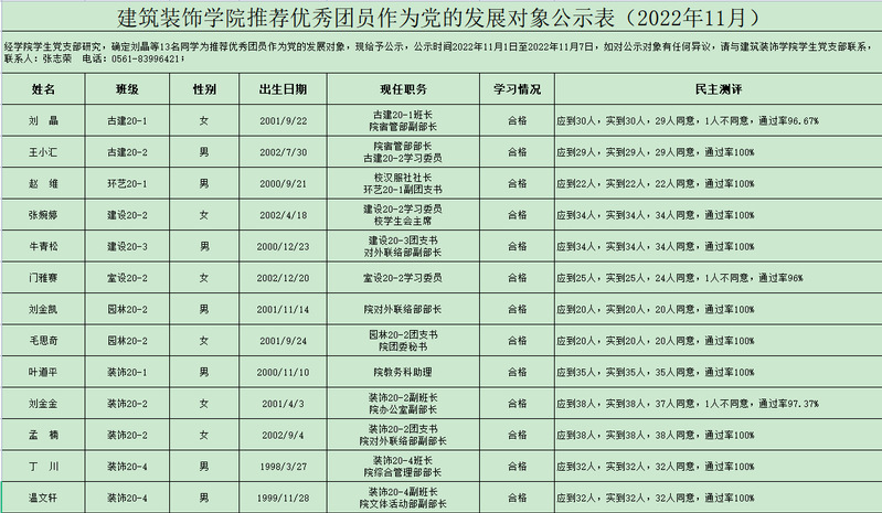 bevitor伟德国际1946推荐优秀团员作为党的发展对象公示表(2022年11月)