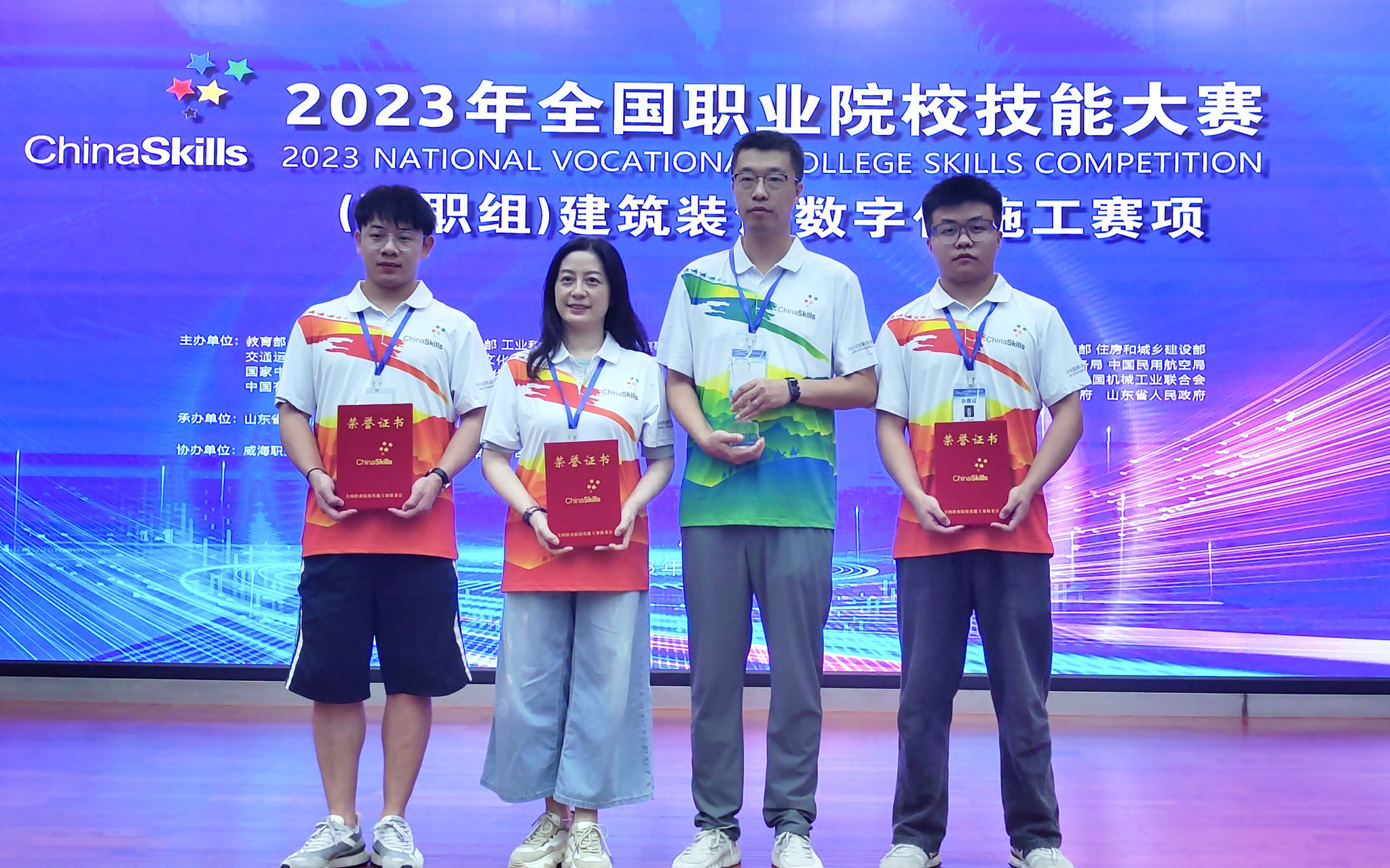 8月14日至17日,2023年全国职业院校技能大赛(高职组)建筑装饰数字化施工赛项在山东省威海职业公司举行。来自全国30个省、自治区、直辖市的59支代表队共计177名选手参加了大赛。公司由bevitor伟德国际1946陆文莺老师、装饰20-1班叶道平、室设20-1班侯小鹏组成的建筑装饰数字化施工赛项参赛队伍作为江苏省代表队之一,荣获本次国赛一等奖。