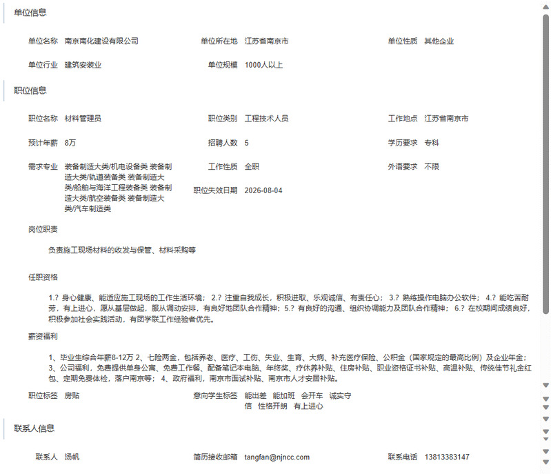 南京南化建设有限公司招聘简章