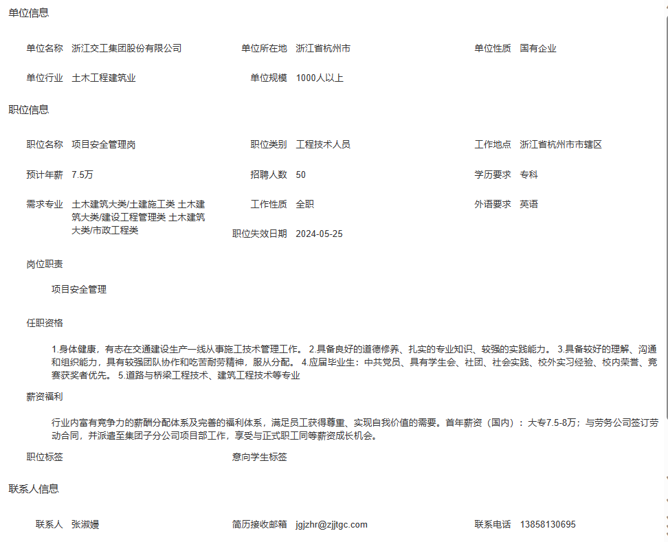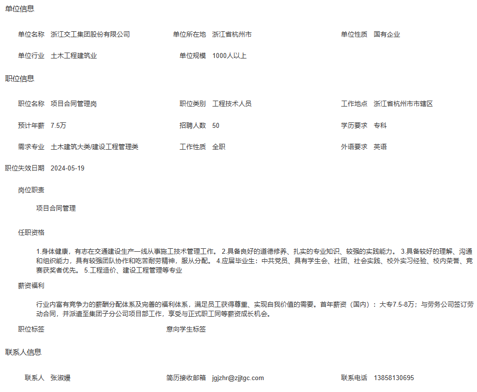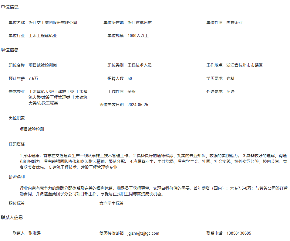 浙江交工集团股份有限公司招聘简章
