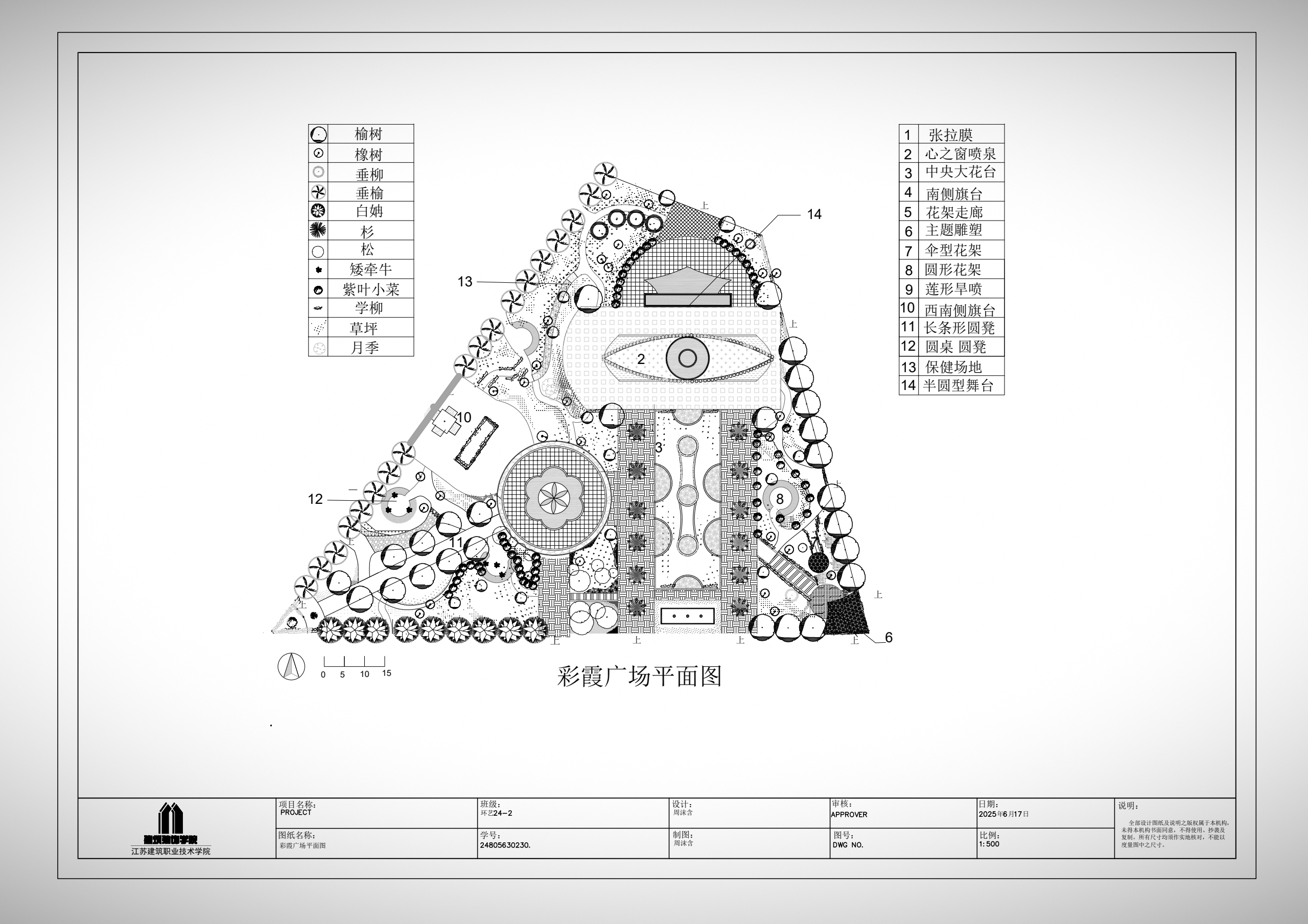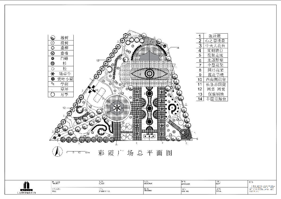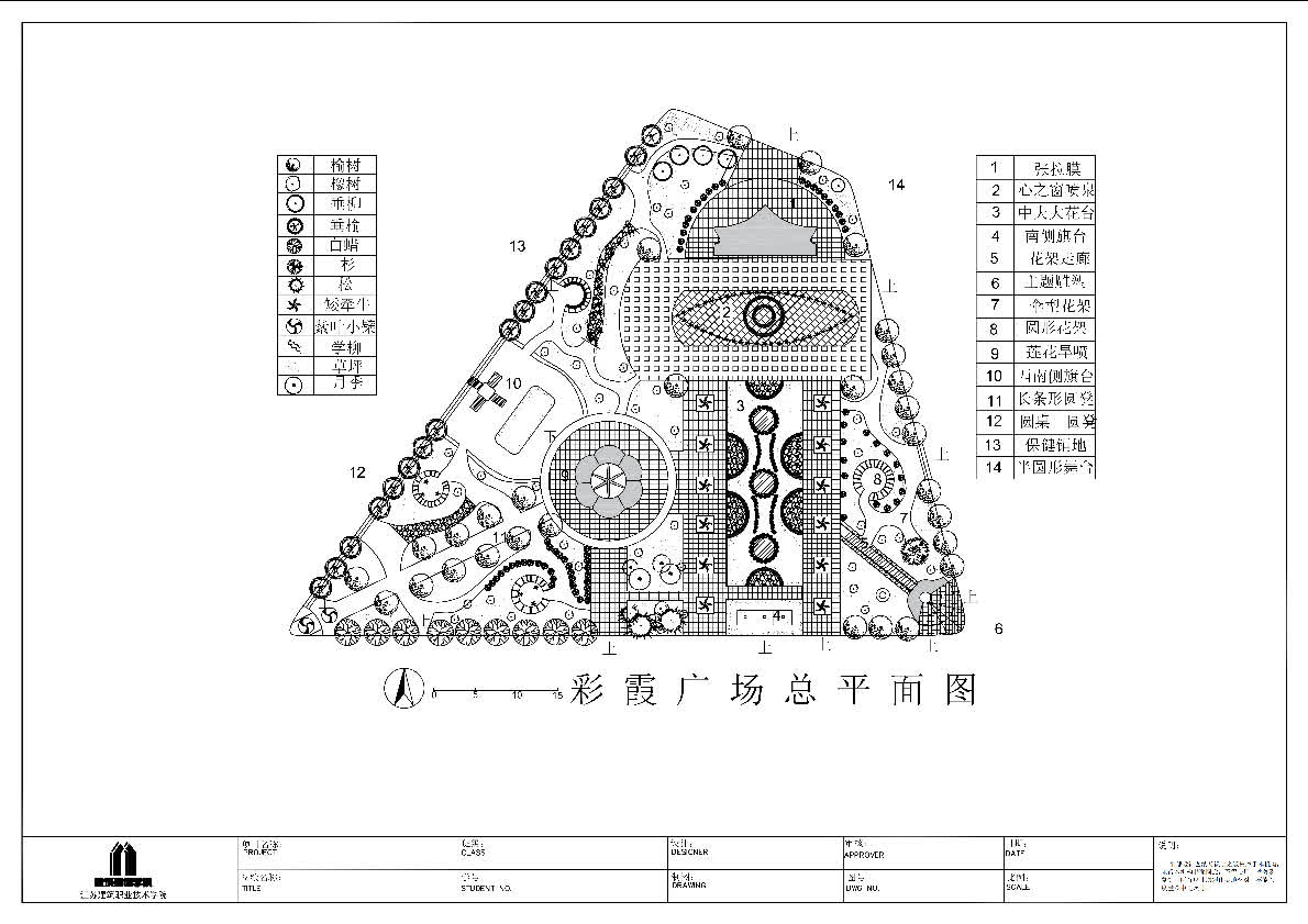 结合环艺专业及该课程的培养目标,我作为授课教师带领员工进行了相应的实训。在这个过程中,员工掌握了基本的CAD应用技术,做到了流畅的应用。而且,作为大一的新生,在没有太多设计基础的前提下,他们愿意挑战有一定难度的图纸。比如,实训项目之“河道驳岸剖面详图”,和“彩霞广场平面”,不仅涉及大量的CAD命令与技巧,还涉及到对技巧的举一反三;同时涉及到对复杂图纸的理解,与绘制流程步骤的理解等。