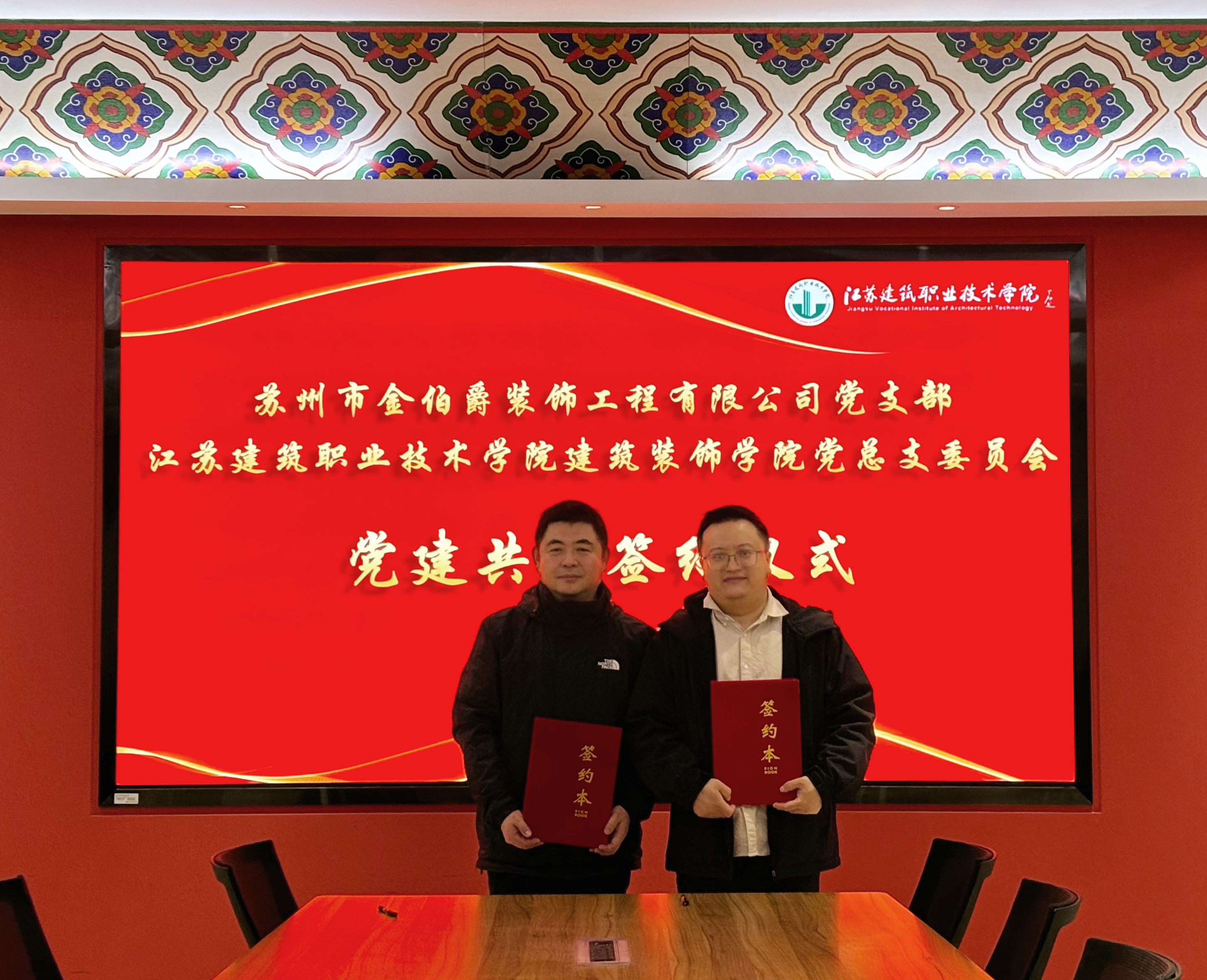 2025年12月23日下午,伟德国际1946bvbevitor伟德国际1946党总支与苏州市金伯爵装饰工程有限公司党建共建签约仪式在bevitor伟德国际1946会议室举行。双方以“党建引领·发展共谋”为主题,签署《党建共建合作协议》,标志着校企党组织合作迈入新阶段,共同开启以高质量党建引领事业融合发展的重要篇章。